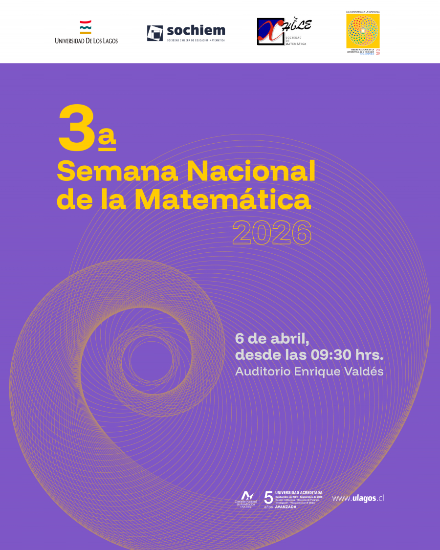 El pasado lunes 6 de abril se realizó de manera exitosa en nuestra casa de estudios la inauguración de la Tercera Semana de la Matemática de Chile, este es un evento promovido por el MINEDUC, la Sociedad Chilena de Educación Matemática, y Sociedad Matemática de Chile, contando con la participación de ambas representadas por sus presidencias Dra. Soledad Estrella y Dr. Mauricio Godoy respectivamente, y toda la comunidad ULagos presente!